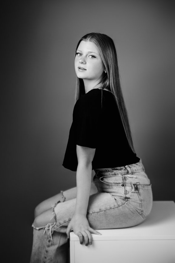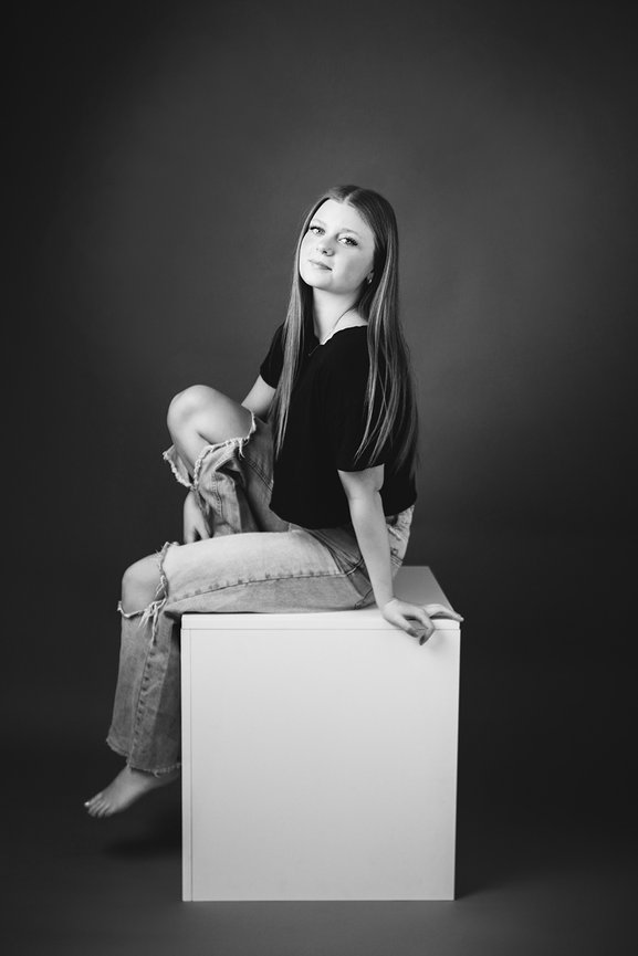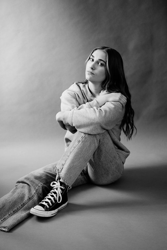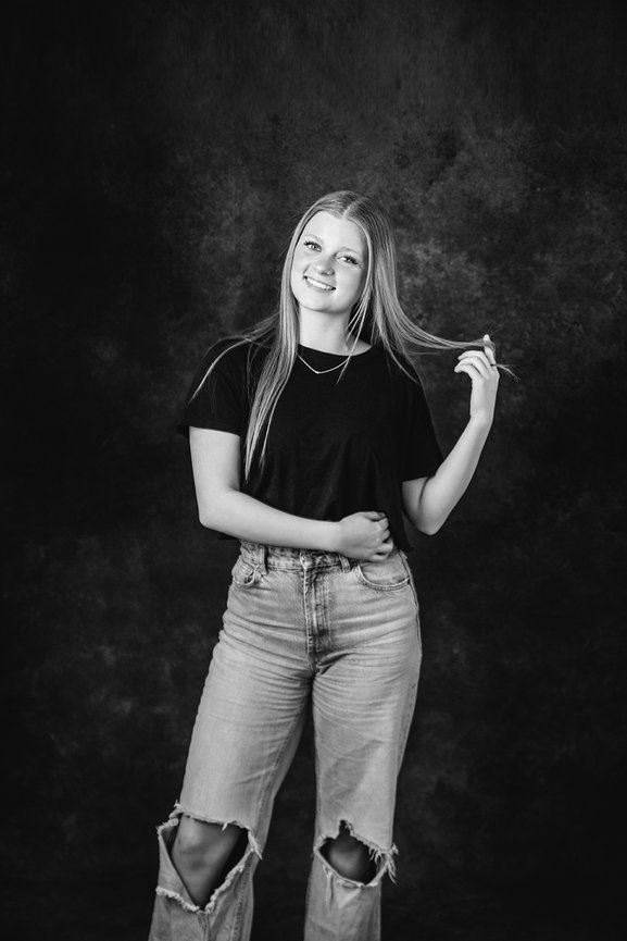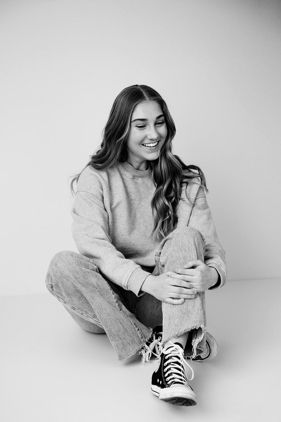 Our in-studio senior sessions redefine traditional senior photography with a stylish, sleek, and magazine-worthy approach. Controlled lighting and a curated set ensure every shot is flawless. Yes, professional hair & makeup artistry is included!